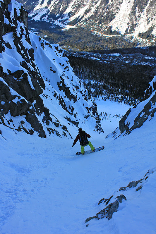 Headed up the Blackcomb ski hill and out to check out some couloir around the Spearhead and Decker. The sweet 5cm's really helped out, the skiing was great!